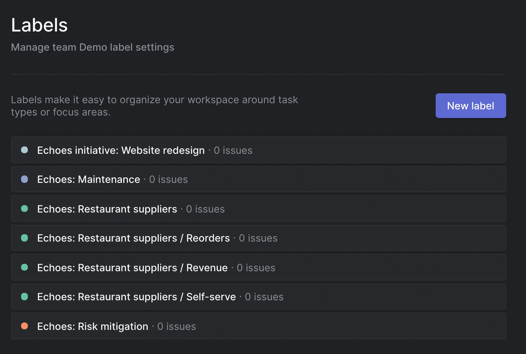 purpose echoes can connect to your linear instance and help you tag linear issues with the intended outcomes and initiatives they contribute to this allows you to express the purpose of work during the planning process in linear and have related code contributions inherit these annotations, therefore reducing the labelling effort for engineers installation linear integration is done through the https //app echoeshq com/admin/integrations you can connect to linear using either the oauth flow (recommended), or providing a personal api keys generated through your linear settings the installation is finalized by selecting the teams you wish to enable echoes for how to use echoes creates labels on all teams on which it is enabled one for each configured outcome and initiative (they will all be prefixed with echoes ) you can link github pull requests or gitlab merge requests to linear issues through their branch name, the issue id in their title, or the issue id in their description (as described on https //linear app/docs/github#link prs ) when echoes detects a link, it will directly apply the labels it finds on both the linked issue and its parent, if any labeling behavior details labels are only applied when a pull request is opened, edited, or reopened changing the intent on a linear ticket will not change the labels on a previously opened pull request the automation only adds more labels and never removes previously existing labels from the pull request contributing efforts from linear issues some efforts happen outside of git, such as design work, customer support, or testing activities echoes makes it possible to account for those efforts as long as they exist as issues in a third party system such as linear a completed linear issue tagged with one of the effort labels below will be accounted for as efforts in the same way a github pull request or a gitlab merge request does these items can be found in https //app echoeshq com/activity/units alongside github pull requests and gitlab merge requests frequently asked questions q can we use linear estimation to weight issues? you cannot use linear estimation feature at this time to weight issues in echoes, for several reasons they serve different purpose estimation is a guess before work happens, while echoes effort labels capture the realized load after the task is completed units are not naturally mapped linear estimation has more option than t shirt sizing alone, which makes alignment across on the same scale systems difficult a ticket being estimated does not mean that it should contribute to echoes efforts most tickets will serve as context for a series of code changes, which echoes will capture and account for through the corresponding github pull requests and gitlab merge requests the only tickets which should contribute efforts by themselves are those for which some amount of work happened outside of git